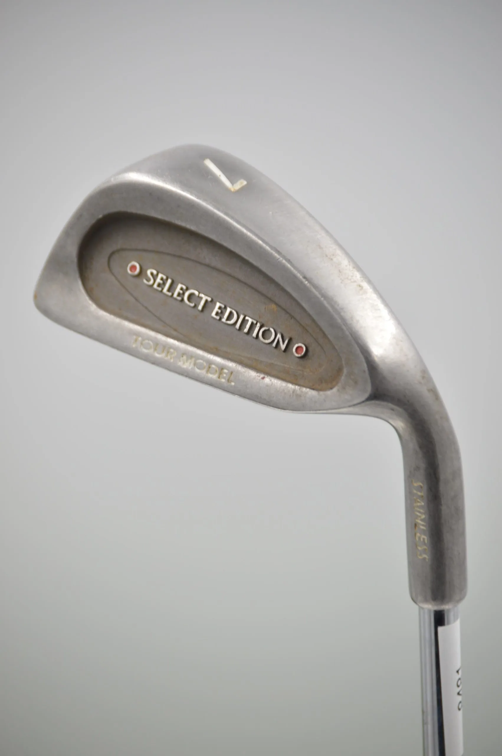 Iron is in fair condition, with some wear to the head and face. Shaft is a stock Select Edition shaft in R Flex with a Sure Tac Grip.